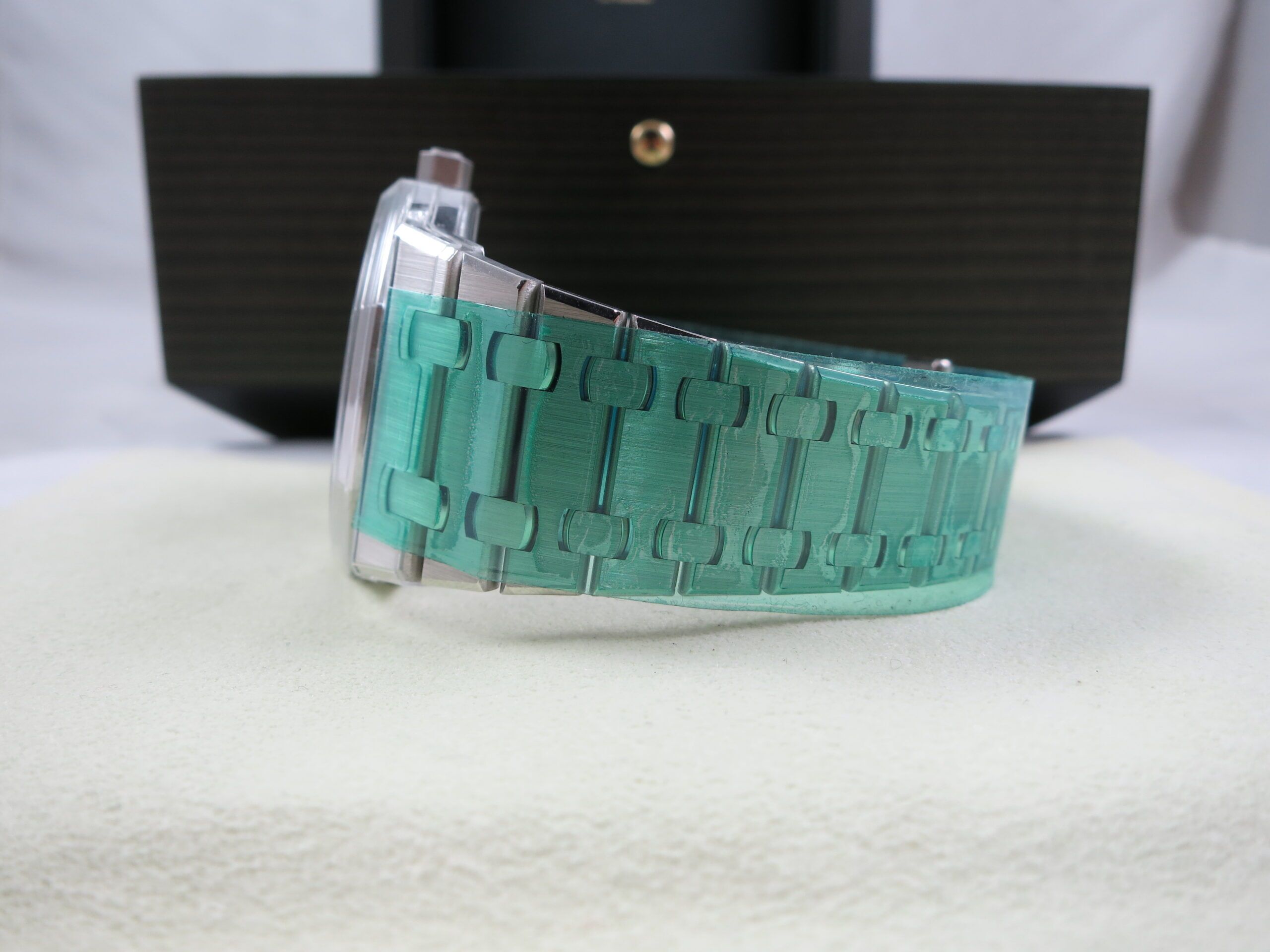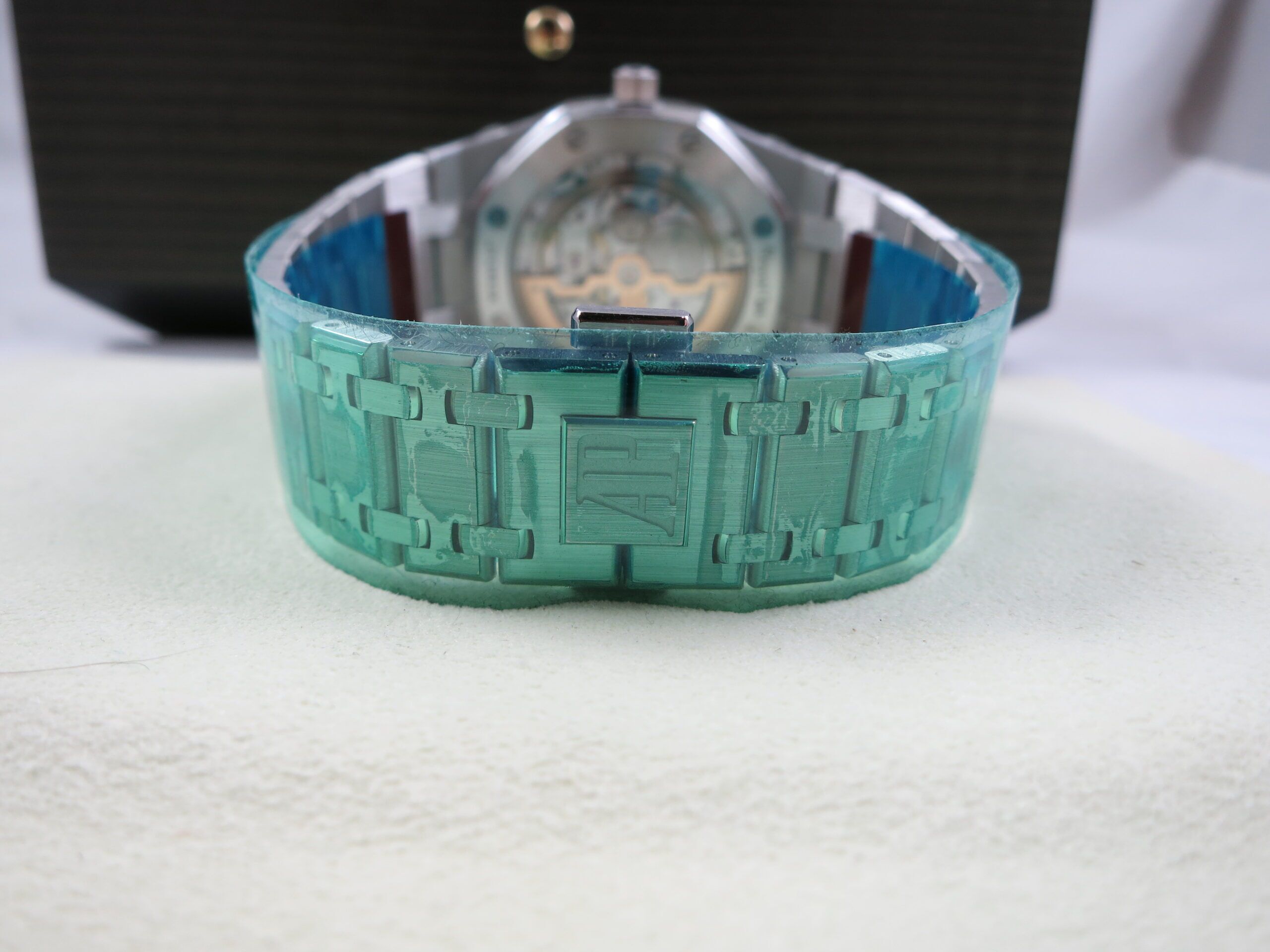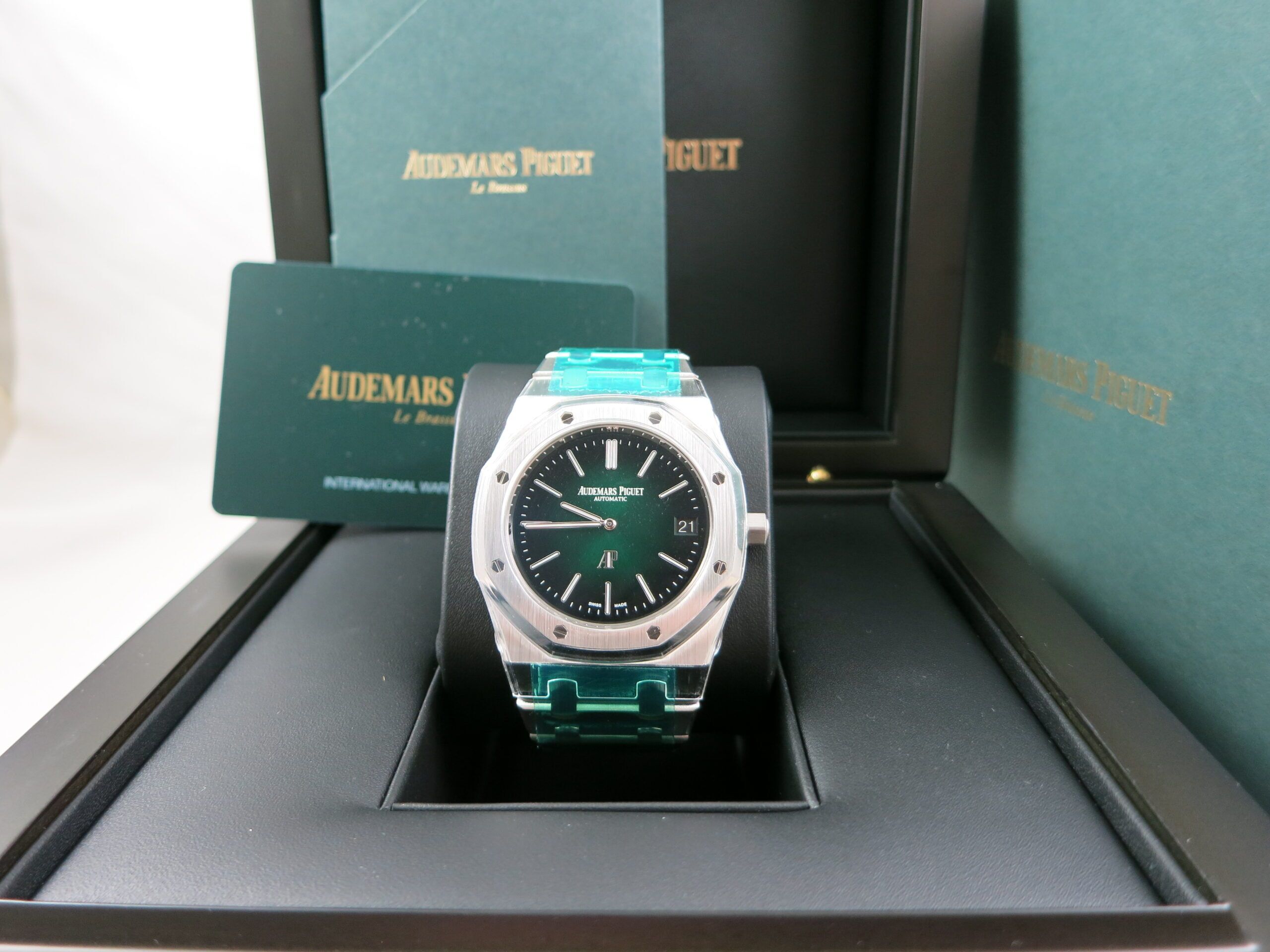 For sale is an unworn and completely factory sealed Audemars Piguet Royal Oak 16202PT green Dial complete set. This is the newest ultra thin model and is 39mm.